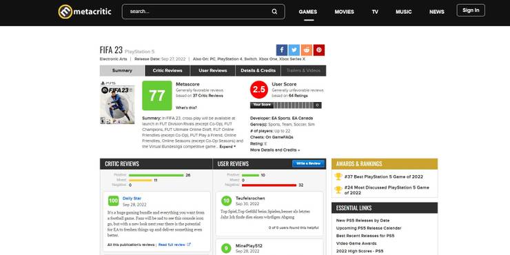 بسیاری از بازیها امسال به دلایل مختلف مورد بررسی قرار گرفتند و FIFA 23 آخرین مورد اضافه شده به این لیست است. حتی نسخههای محبوبی مانند Horizon Forbidden West و Elden Ring نیز مورد بررسی قرار گرفتند، اگرچه کاربران معمولاً دلایل محکمی برای انجام این کار دارند. در مورد FIFA 23، به نظر می رسد که ترکیبی از مسائل ضد تقلب در رایانه شخصی و نارضایتی هایی است که سال ها در بین مخاطبان ایجاد شده است.